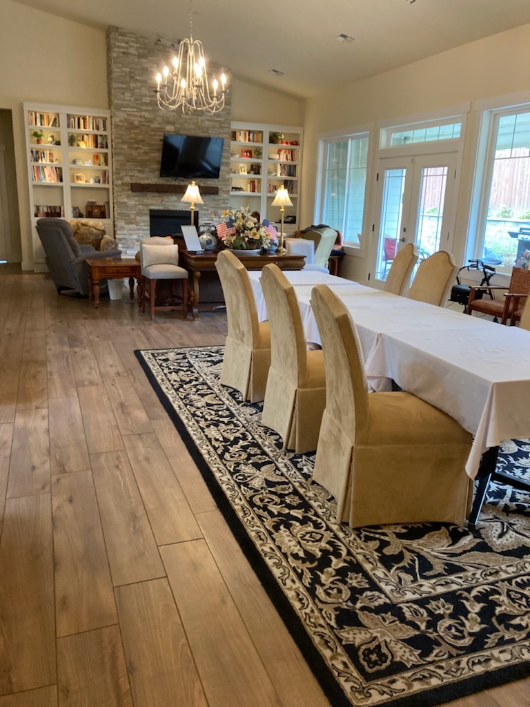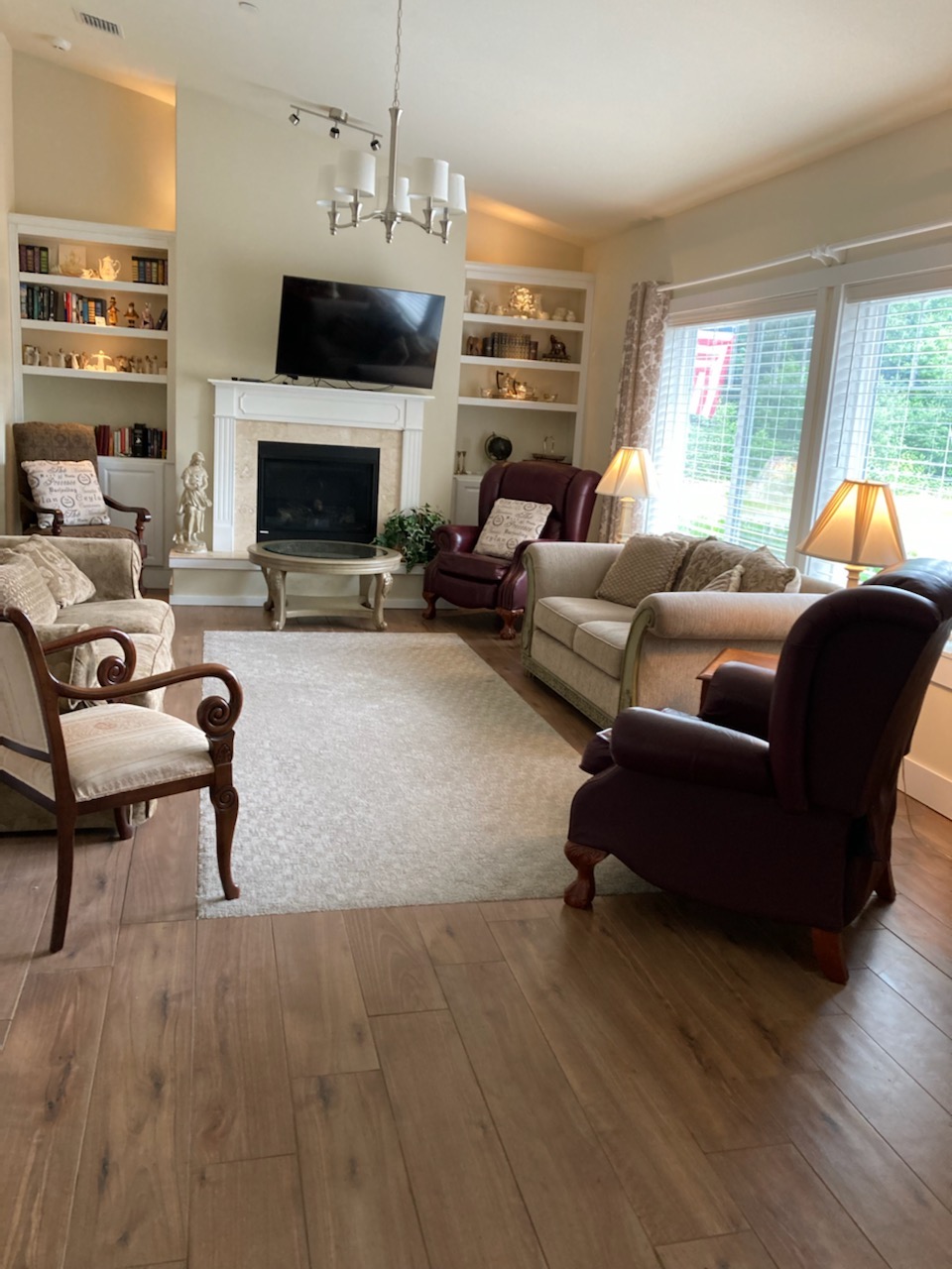 Stonewell was especially designed to provide a superior living environment for our residents. Each individual room has a private on suite bathroom with heated floors and a roll in shower and its own heating and cooling system. There is internet and basic cable in each room. We have two beautiful sitting areas with fireplaces for residents and guests. A large covered patio and a beautifully landscaped, fully fenced yard that can be accessed via sliding patio doors in the resident’s rooms.