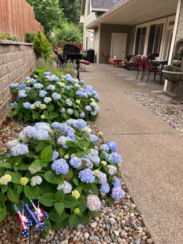 We have a beautiful landscaped backyard that is quiet, private, and brimming with flowers in the summer.